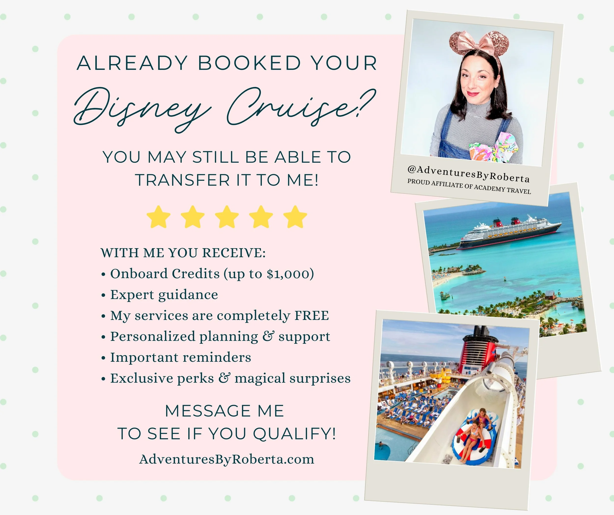 48. Book with a travel advisor — Booking with a travel advisor (like me!) is the easiest, most stress-free way to plan your Disney Cruise. My services are free, and I’ll make sure you get the best price and help secure extra perks like onboard credits.
